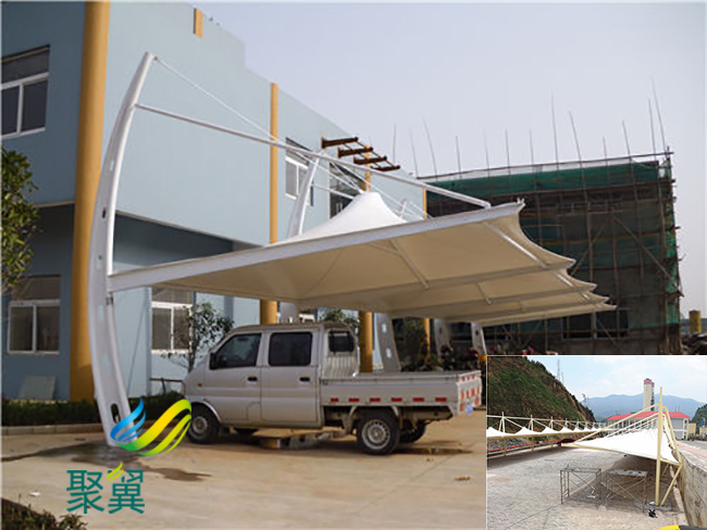 膜結(jié)構(gòu)車棚建筑中采用了具有保護涂層的膜材料,具有良好的自清洗的結(jié)果。膜結(jié)構(gòu)車棚可以利用雨水的自然沖刷來清潔建筑物的外觀,也可以增加建筑物的使用壽命,膜結(jié)構(gòu)車棚還具有運輸方便、比較新并且方便、不易積雪等優(yōu)點。
